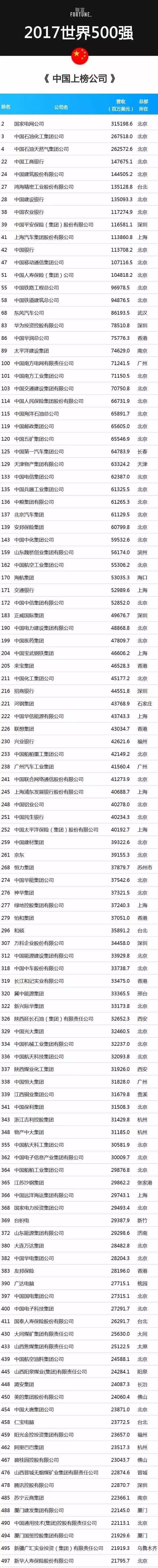 下面我們一起來看看本年度《財富》世界500強,115企業(yè)中國企業(yè)都有誰?