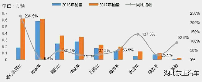 2017年1~7月市政環(huán)衛(wèi)車各細(xì)分市場表現(xiàn)
