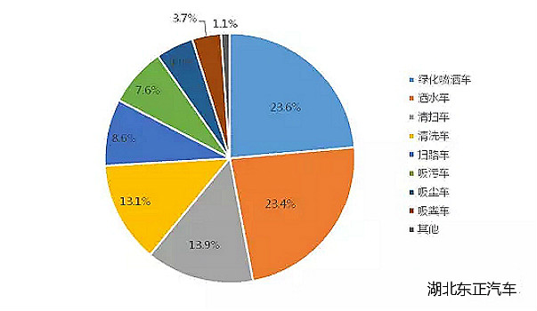 2017年1~7月市政環(huán)衛(wèi)車各細(xì)分市場結(jié)構(gòu)