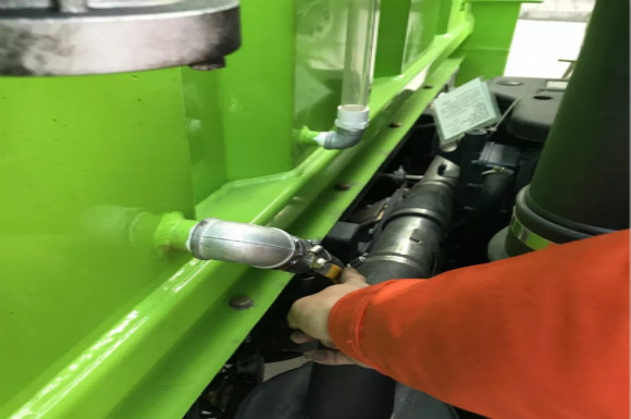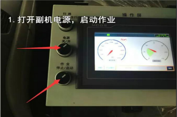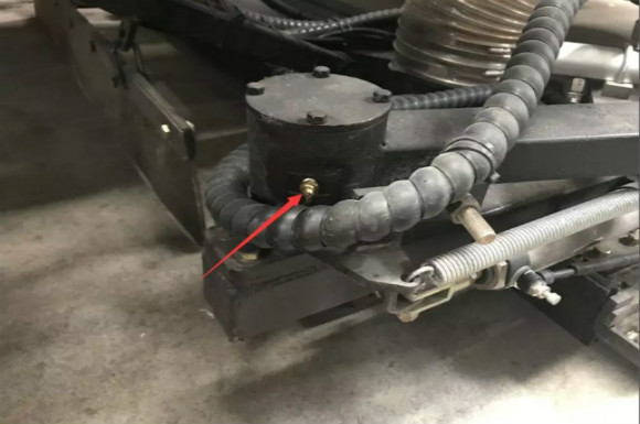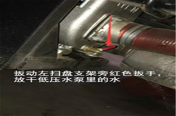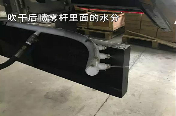 4.啟動底盤發(fā)動機,采用氣吹水,吹干滯留在左右噴桿、吸盤噴水桿、后噴霧桿里的水分