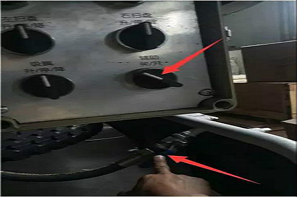 車尾操作盒輔助打開,然后打開藍色閥門,吹干后噴霧桿里面的水分