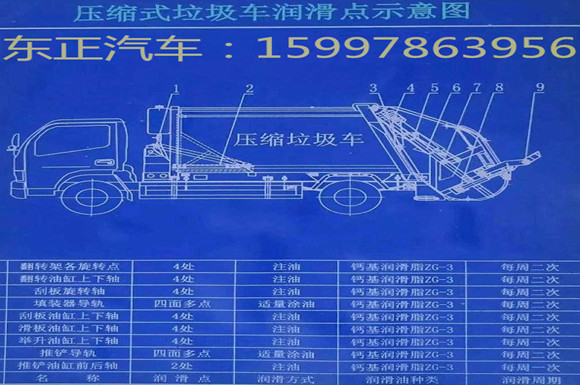 常規(guī)使用中最經(jīng)常的維護(hù)就是對各個(gè)活動點(diǎn)旋轉(zhuǎn)點(diǎn)的潤滑,對于壓縮式垃圾車來說就是加注黃油。(切記只要裝有黃油嘴的地方都要加注黃油,時(shí)間一周不得低于一次,在加注黃油的同時(shí)順便檢車一下各個(gè)部件的磨損情況,如有磨損嚴(yán)重的要及時(shí)的跟換零部件,以免損壞油缸。)