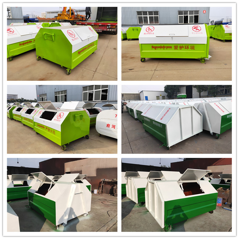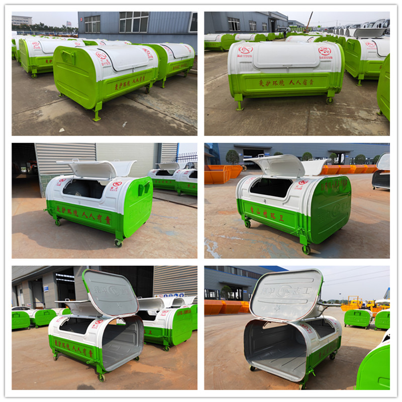 勾臂垃圾車配套移動(dòng)垃圾箱外形以上梯形下長(zhǎng)方形、上弧形下長(zhǎng)方形、上弧形下弧形、長(zhǎng)方形為主,箱體兩邊各帶一對(duì)或二對(duì)垃圾投入口或頂部開口,帶蓋式箱體能夠避免風(fēng)將輕質(zhì)垃圾(塑料袋,廢紙等)吹散和防止雨水進(jìn)入箱內(nèi);箱體底部帶一對(duì)鐵輪方便吊上卸下時(shí)垃圾箱的移動(dòng),箱體后部可開啟【帶鎖緊機(jī)構(gòu),配備密封條】。勾臂垃圾箱外觀形狀、大小容積可根據(jù)用戶需求定制加工。
