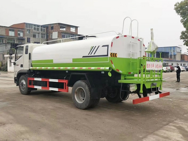 (2)配備專用灑水泵,前噴后灑、側(cè)噴、后工作平臺及灑水高壓炮。灑水泵自吸高度為7米左右,整車灑水寬度15米左右,后工作平臺水炮可調(diào)節(jié)(直沖狀、大雨、中雨、小雨、毛毛雨),有效射程28-35米。整車帶消防接頭、自流閥及自吸功能。附送2根3米水管,1個爬梯,兩側(cè)及后保險杠。