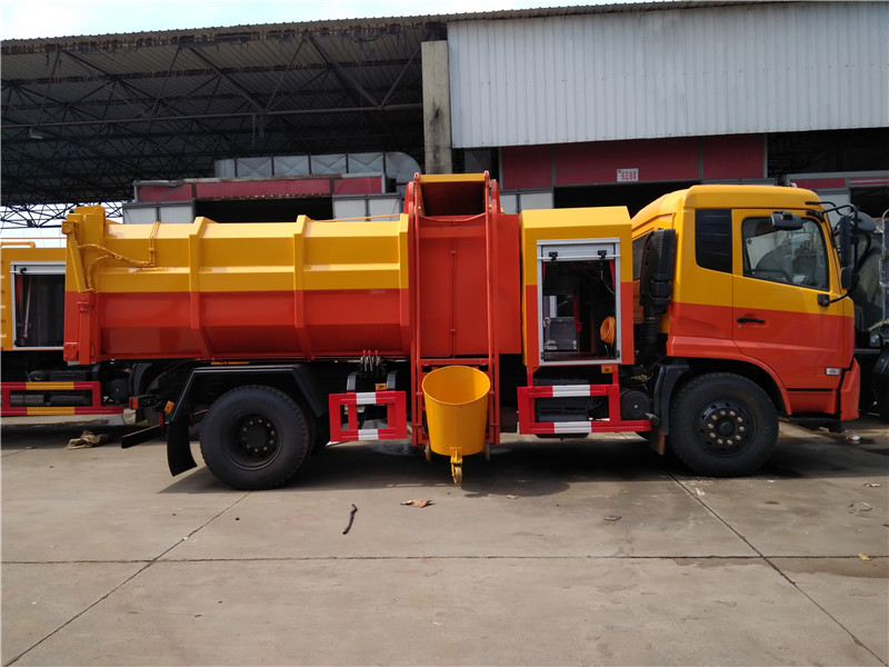 掛桶式糞污糞便清運車配掛桶提升機,可配合垃圾桶使用,通過液壓提升裝置可將垃圾桶內(nèi)污泥、糞污慢慢提升傾倒入車廂內(nèi),裝滿后運輸?shù)绞占c進行自卸式傾倒。適用于全國通用標(biāo)準(zhǔn)的120升、240升垃圾桶,鐵桶、塑料桶等。優(yōu)點在于一臺車可配多個垃圾桶使用,密封好,運輸途中滴水不漏,駕駛室內(nèi)外兩用操控,司機師傅不下車在駕駛室內(nèi)即可完成箱體卸料。廣泛用于收運含水污泥、糞污糞便、含水垃圾、淤泥等。