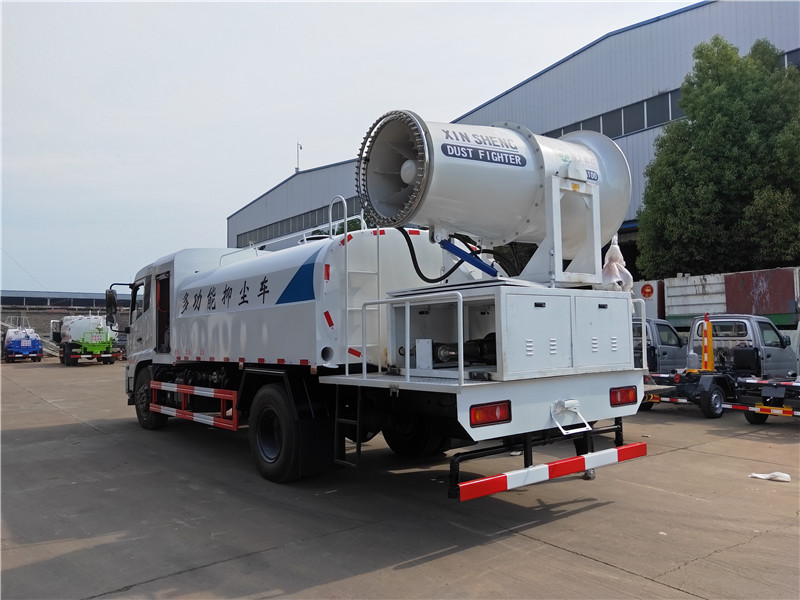 灑水車工作主要由發(fā)動(dòng)機(jī)帶動(dòng)變速箱,變速箱上安裝的取力器帶動(dòng)灑水車水泵產(chǎn)生動(dòng)力,將罐體內(nèi)部的水通過(guò)管路噴灑出去,水泵可自吸自排。可根據(jù)用戶需求選配抑塵霧炮。
